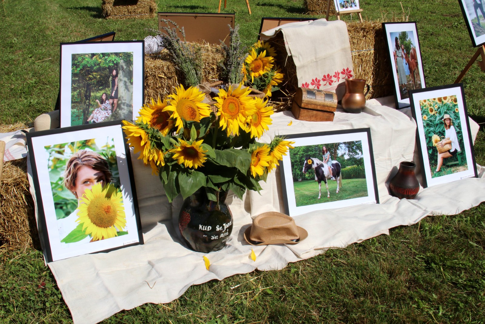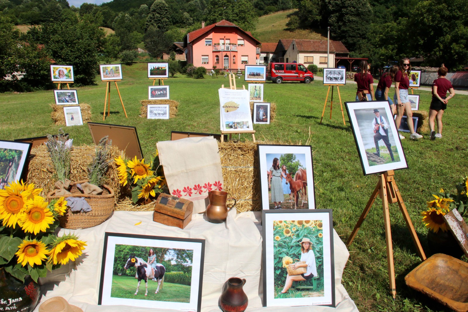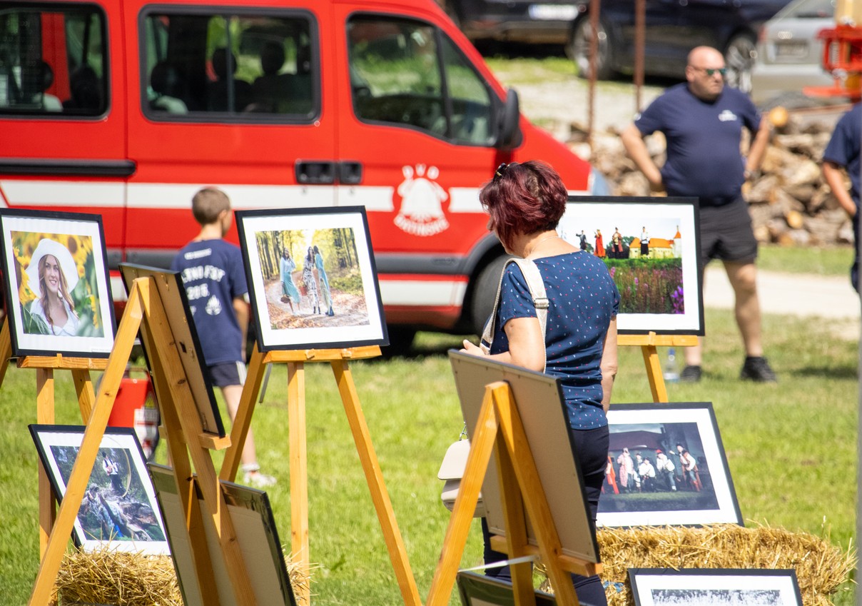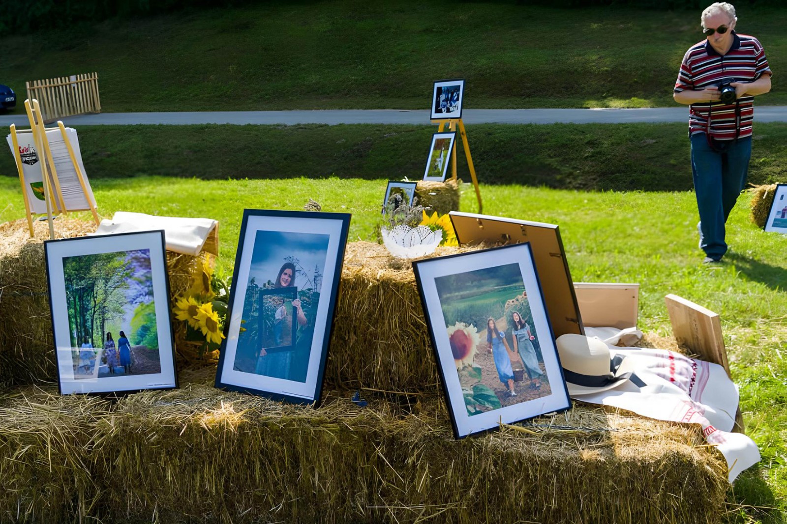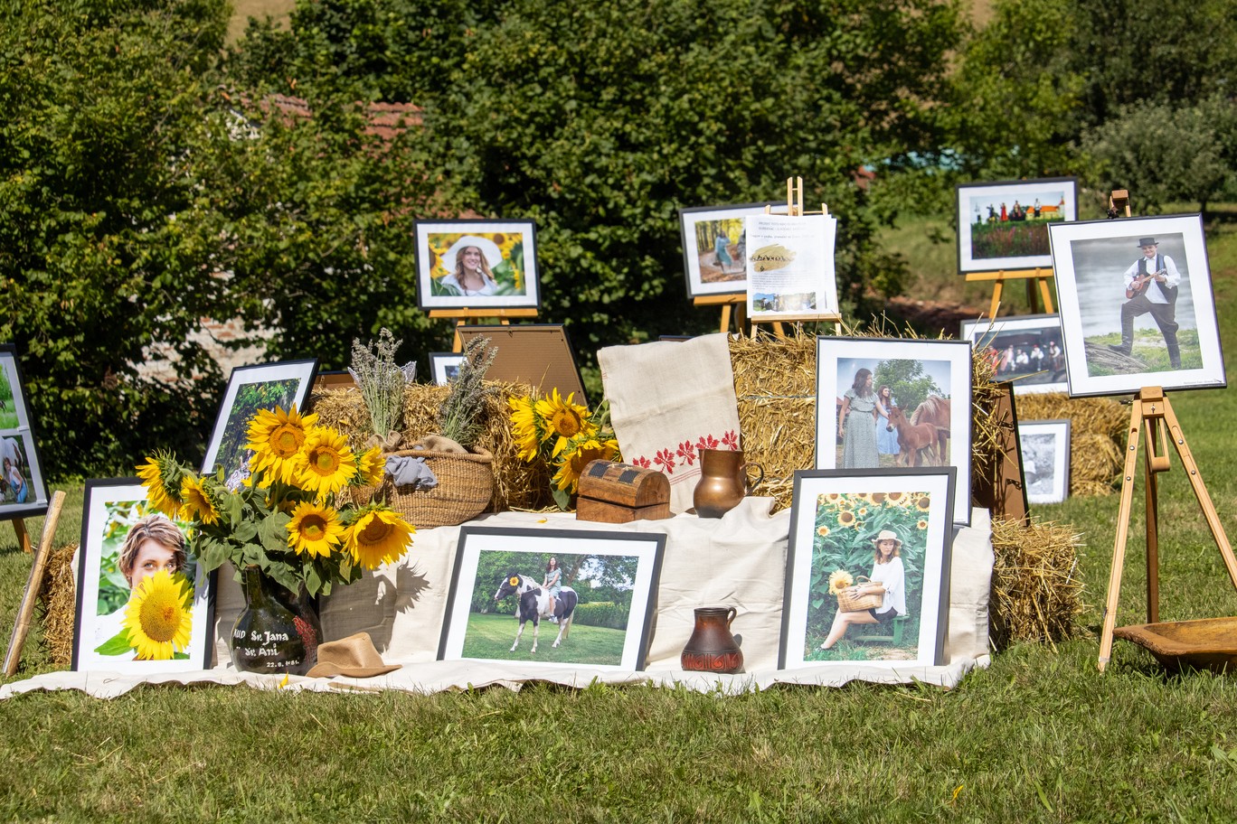 Bile su izložene fotografije koje su snimljene prošle godine na ukupno deset foto-radionica u okviru projekta Tragovi v pesku, koji je podržan i od grada Đurđevca. Dvije prošlogodišnje foto-radionice i jedna ovogodišnja održana je u suradnji s članicama Udruge žena Svetojanke, što je još jedan dokaz višegodišnje uspješne suradnje foto-kino kluba iz Đurđevca sa Mjesnim odborom Svete Ane i udrugama. Prije nekoliko godina u Društvenom domu je bila priređena izložba đurđevačkih fotografa, a ove godine su se odlučili svoje radove izložiti na otvorenom prostoru i to na zelenim livadama uz vodom bogati potok.