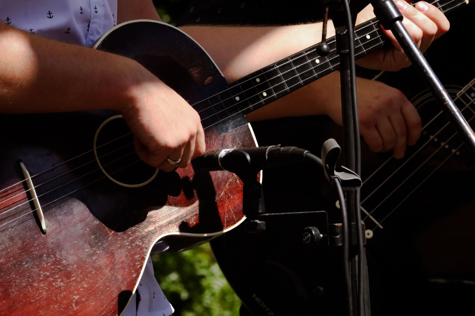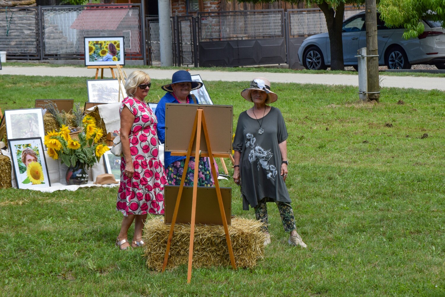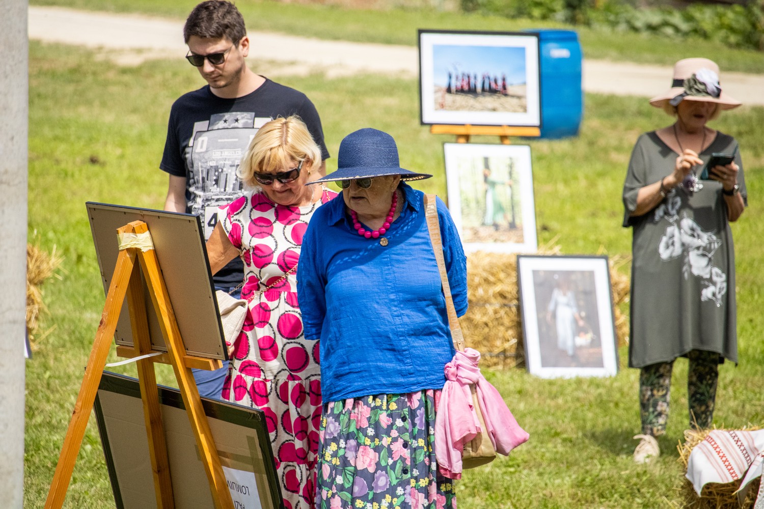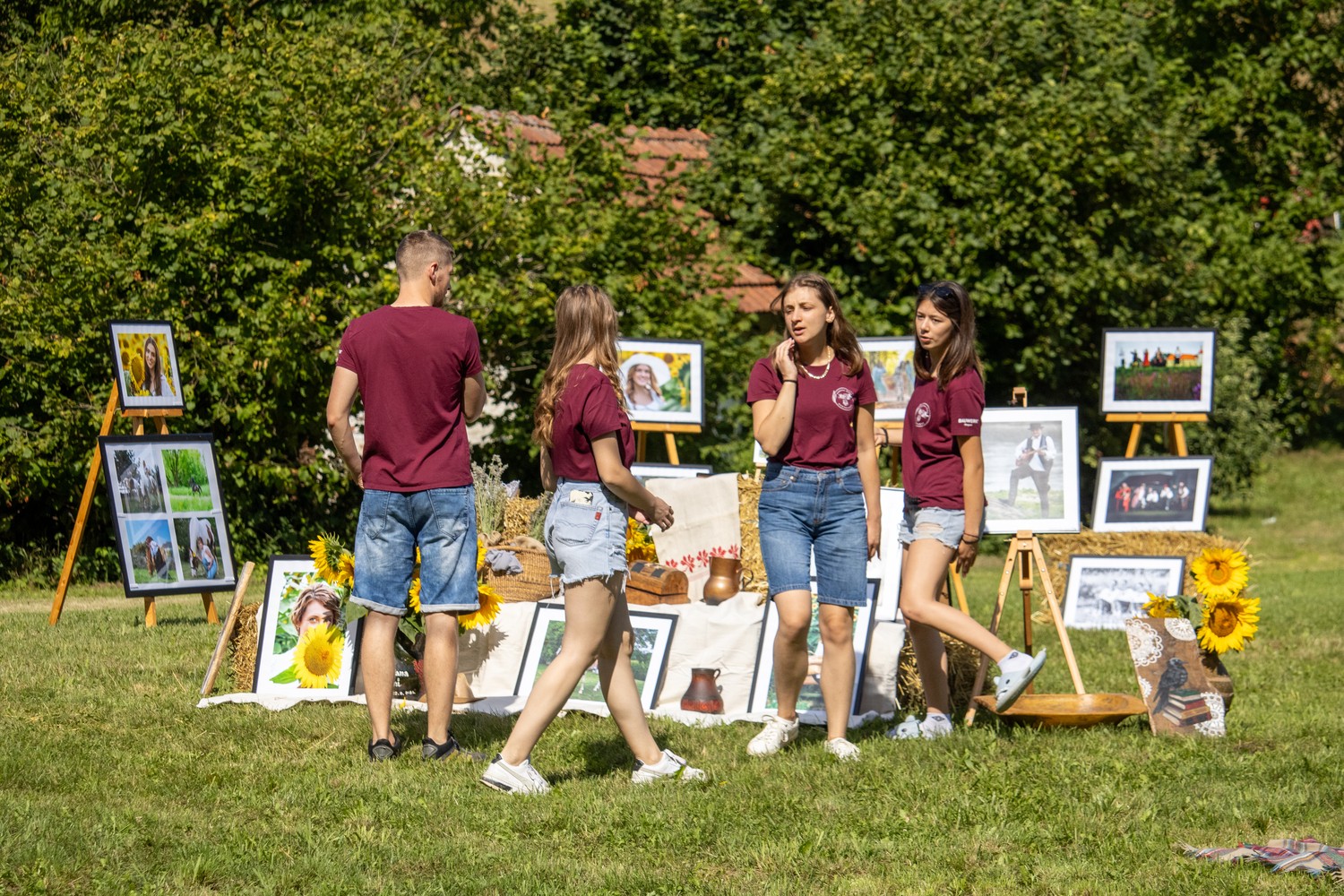 Bile su izložene fotografije koje su snimljene prošle godine na ukupno deset foto-radionica u okviru projekta Tragovi v pesku, koji je podržan i od grada Đurđevca. Dvije prošlogodišnje foto-radionice i jedna ovogodišnja održana je u suradnji s članicama Udruge žena Svetojanke, što je još jedan dokaz višegodišnje uspješne suradnje foto-kino kluba iz Đurđevca sa Mjesnim odborom Svete Ane i udrugama. Prije nekoliko godina u Društvenom domu je bila priređena izložba đurđevačkih fotografa, a ove godine su se odlučili svoje radove izložiti na otvorenom prostoru i to na zelenim livadama uz vodom bogati potok.