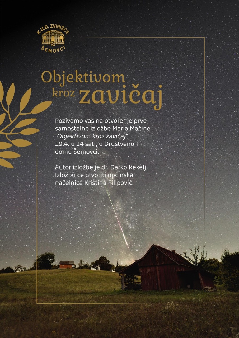 Svoju prvu samostalnu izložbu „Objektivom kroz zavičaj“ otvoriti će 19. travnja 2026. godine u 14 sati u Društvenom domu Šemovci.